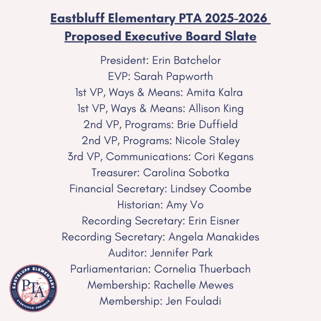 Eastbluff PTA Executive Board 2025-2026 Proposed Slate
