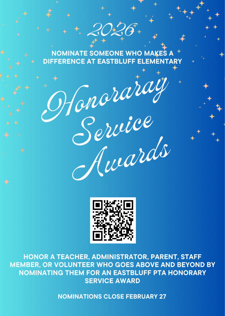 Do you know a teacher, administrator, parent, or volunteer who has gone above and beyond in support of Eastbluff PTA and the school community? The Eastbluff PTA invites you to help us recognize those who make a meaningful difference.