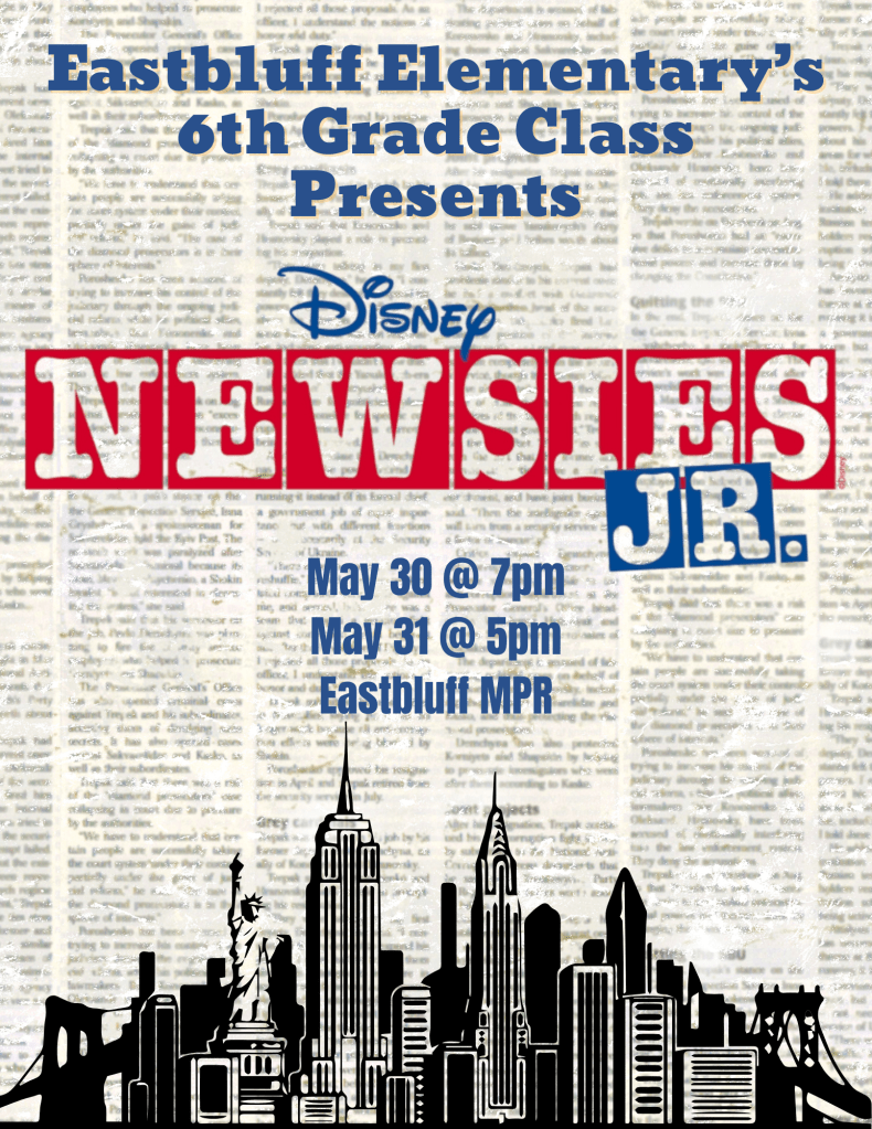 The 6th grade class proudly presents Newsies Jr., a high-energy, heartwarming musical based on the true story of the 1899 Newsboys Strike in New York City. Join us for a night of singing, dancing, and unforgettable performances by our talented 6th graders—you won’t want to miss it!