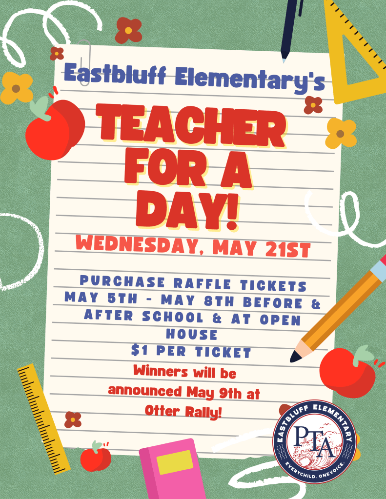 Winners will be announced on May 9th at Otter Rally. The actual Teacher/Staff for a Day event will take place on Wednesday, May 21st where they will enjoy a hands-on experience with their favorite staff member or teacher, including a welcome breakfast and a delicious and fun lunch!